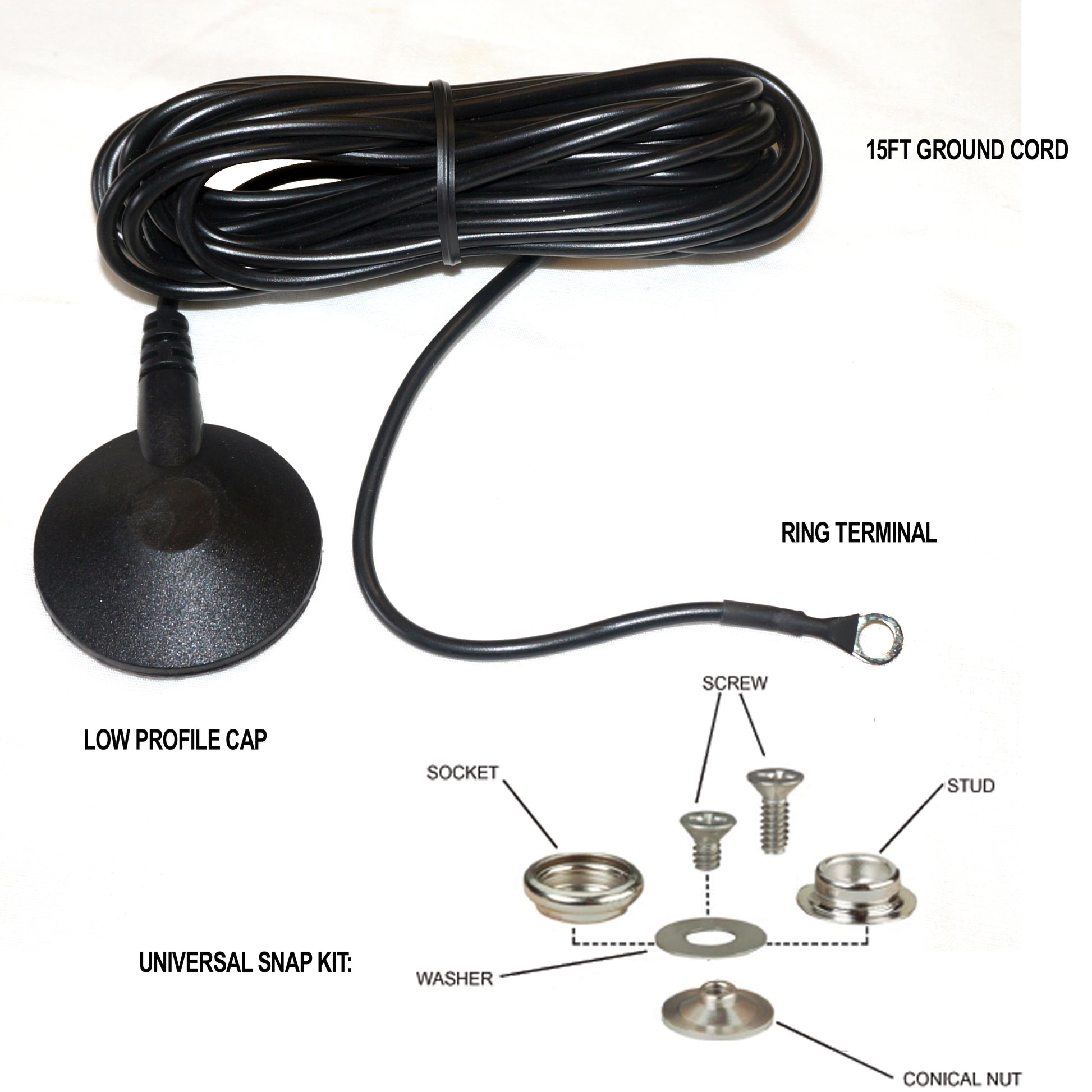 The Floor Mat Grounding Kit includes a Universal Snap Kit that can install a 10mm snap or stud into materials up to 0.375" thick mats. Comes with a low profile Floor Mat Ground Cord that snaps to the mat that has a molded mushroom cap that ensures a secure connection to the mat.