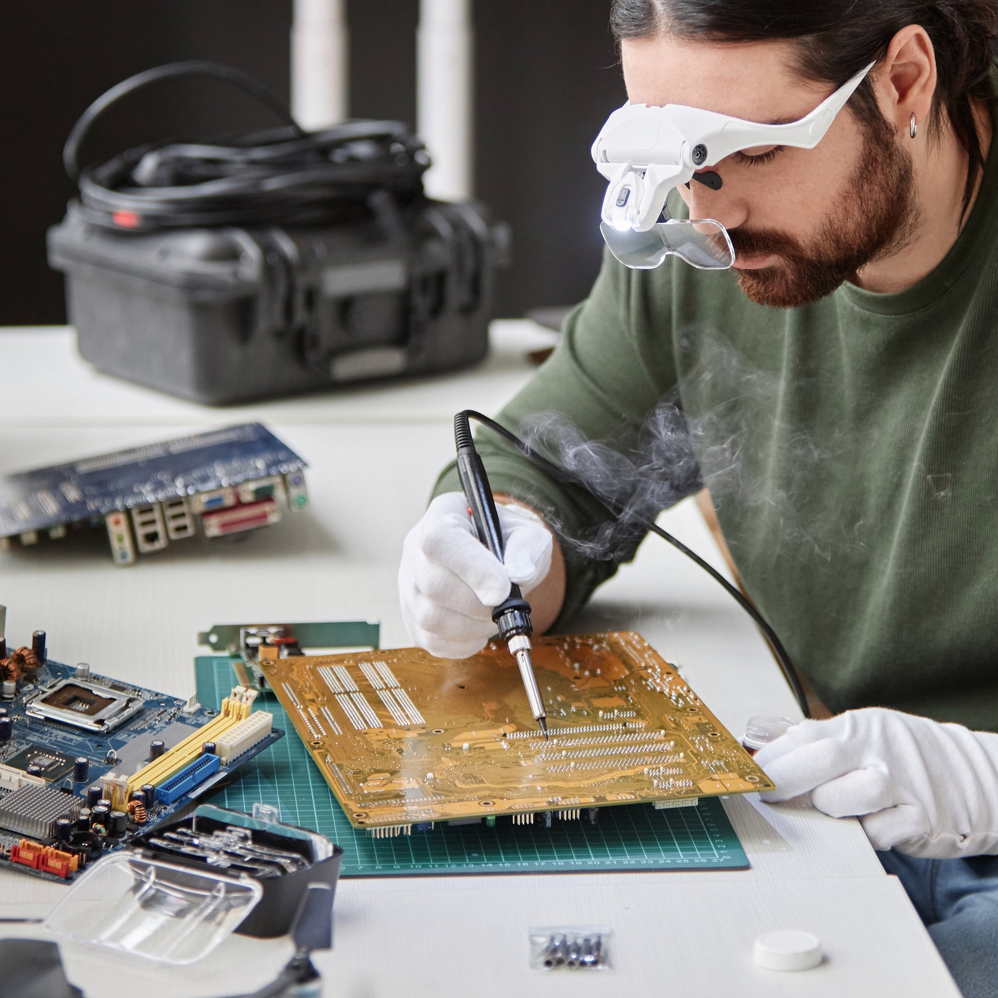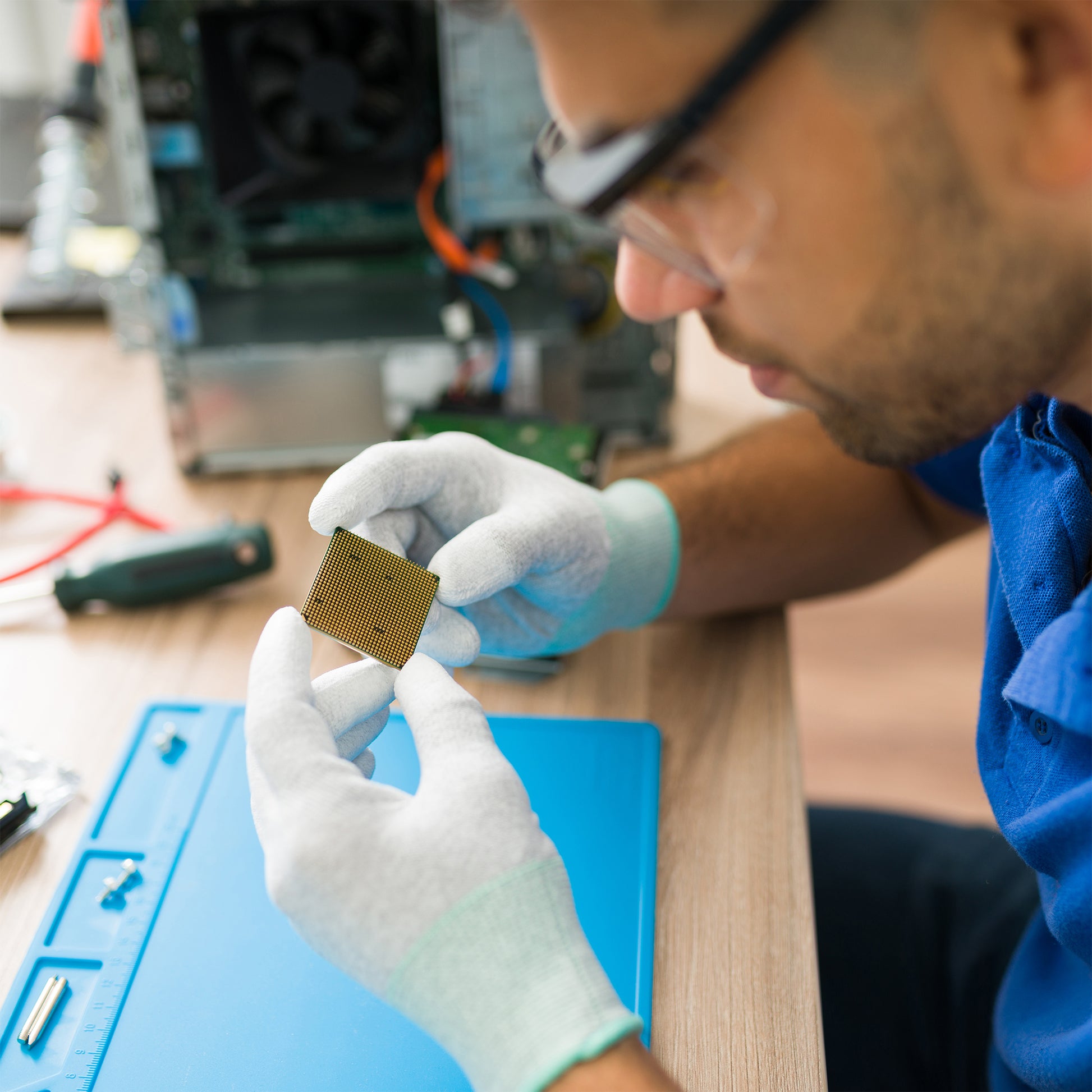 Nylon Uncoated ESD Inspection Gloves protect sensitive electronics during assembly and inspection.