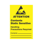 ESD Label printed with “Attention Contents Static Sensitive Handling Precautions Required. Contents: ______”