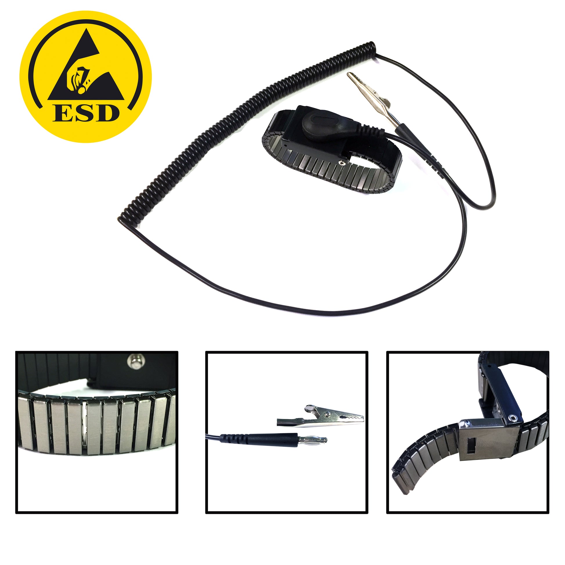 The Static Care Metal Adjustable Wrist Strap is a durable metal wrist strap is adjustable to create a 360 degree conductive contact around the wrist, providing maximum skin contact. The 6ft long coil cord features 2.5mm polyurethane coil insulation offers excellent coil memory. Meets: ANSI ESD-S20.20 and ESDA Standard 1.1.